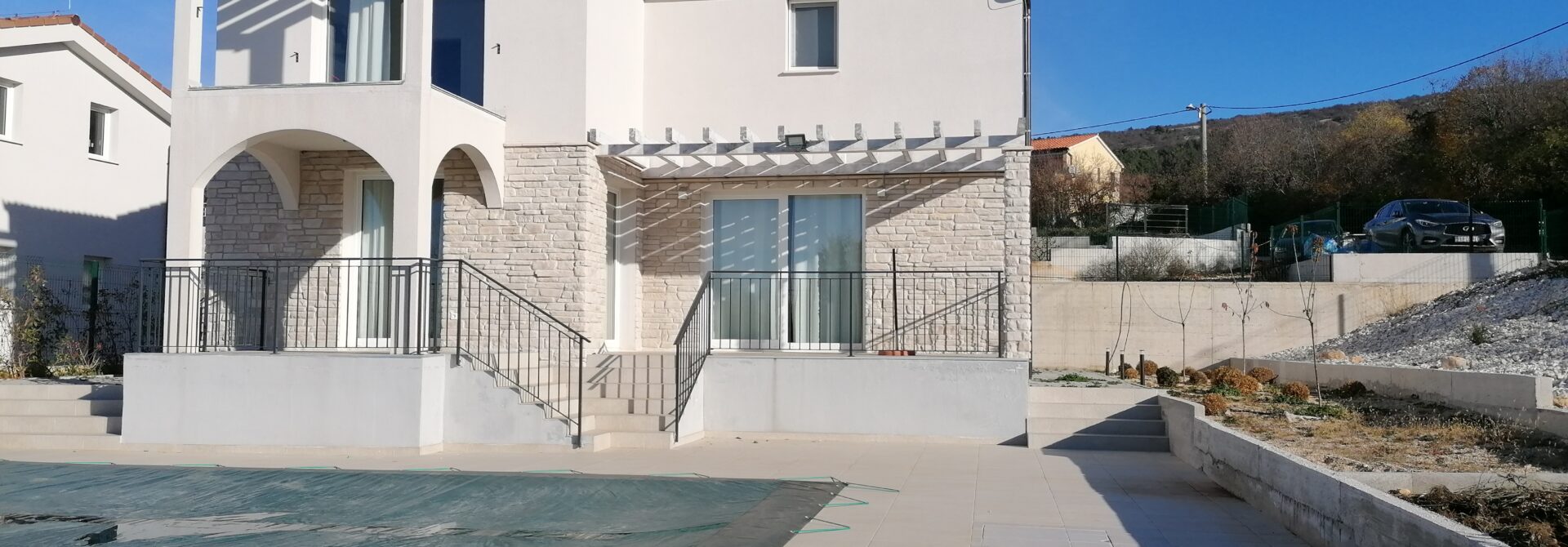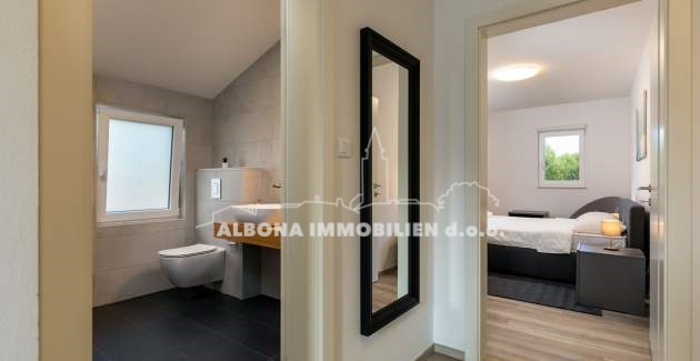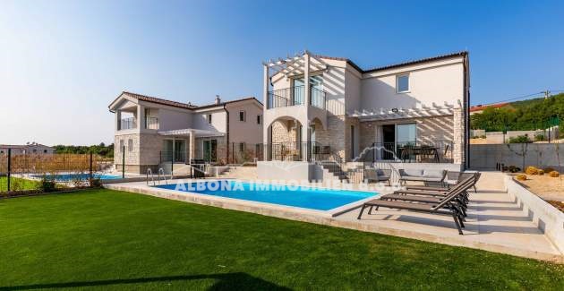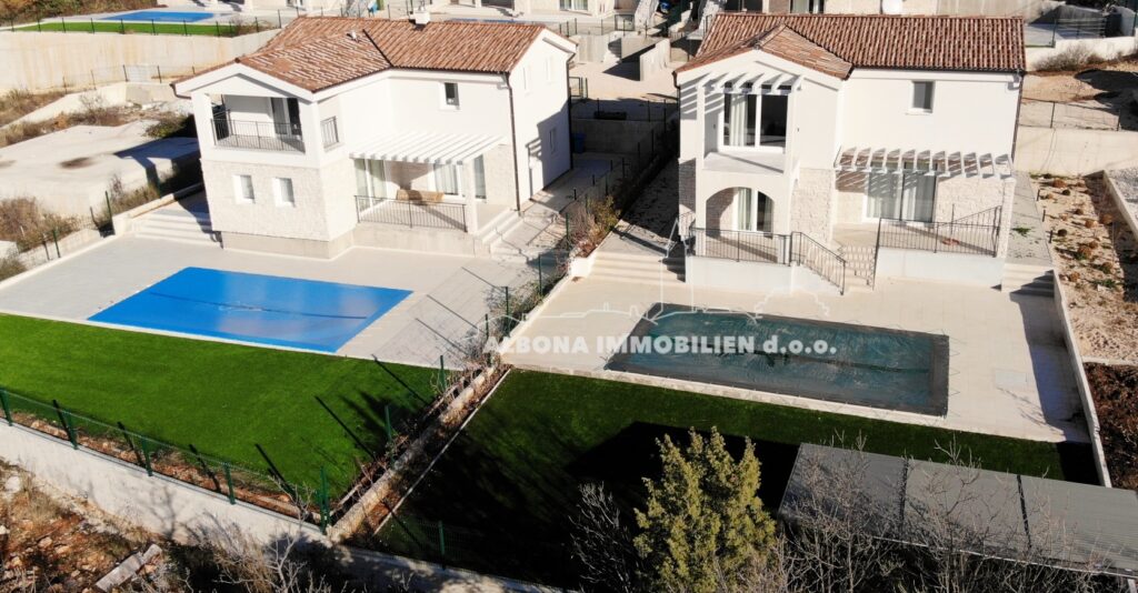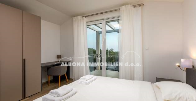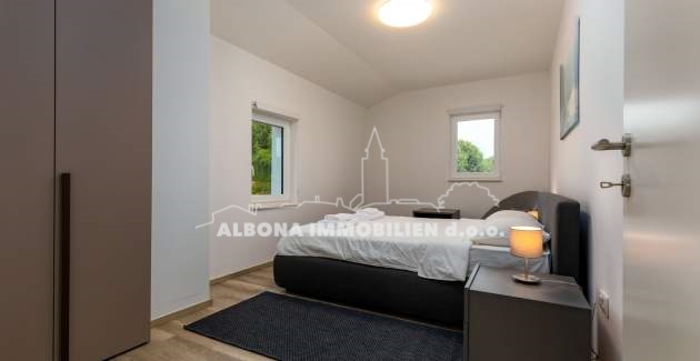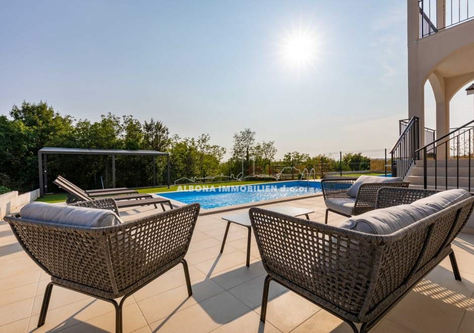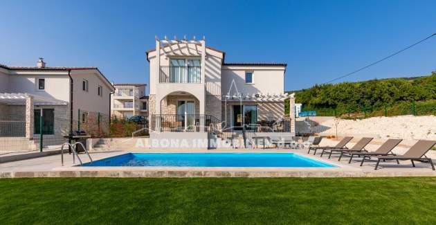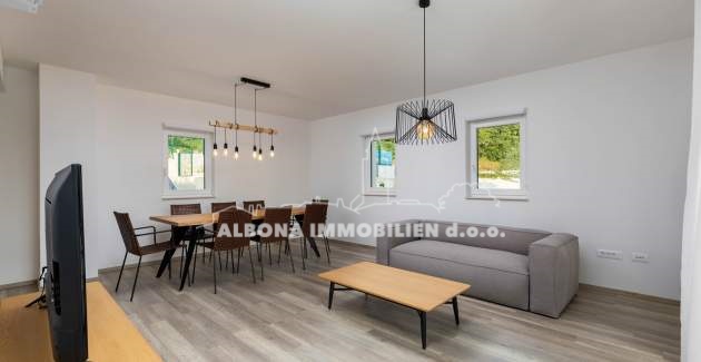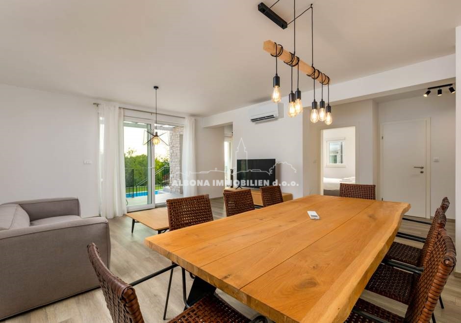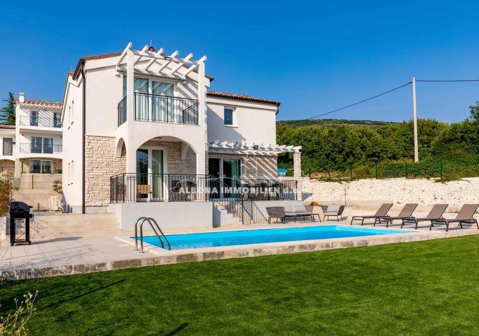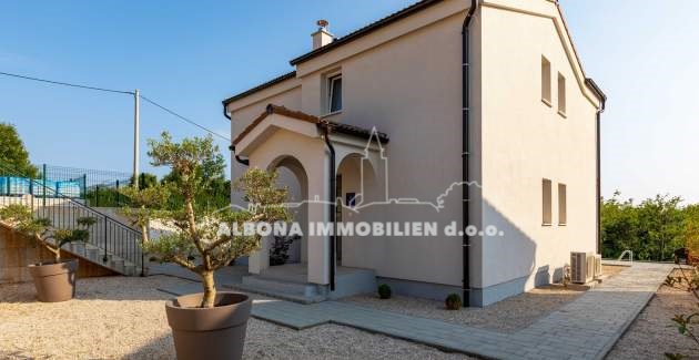 In einem ruhigen Dorf Diminići, 8 km von Labin und nur 4 km vom Campingplatz und dem Meer entfernt, befindet sich ein schöner Neubau mit Schwimmbad.