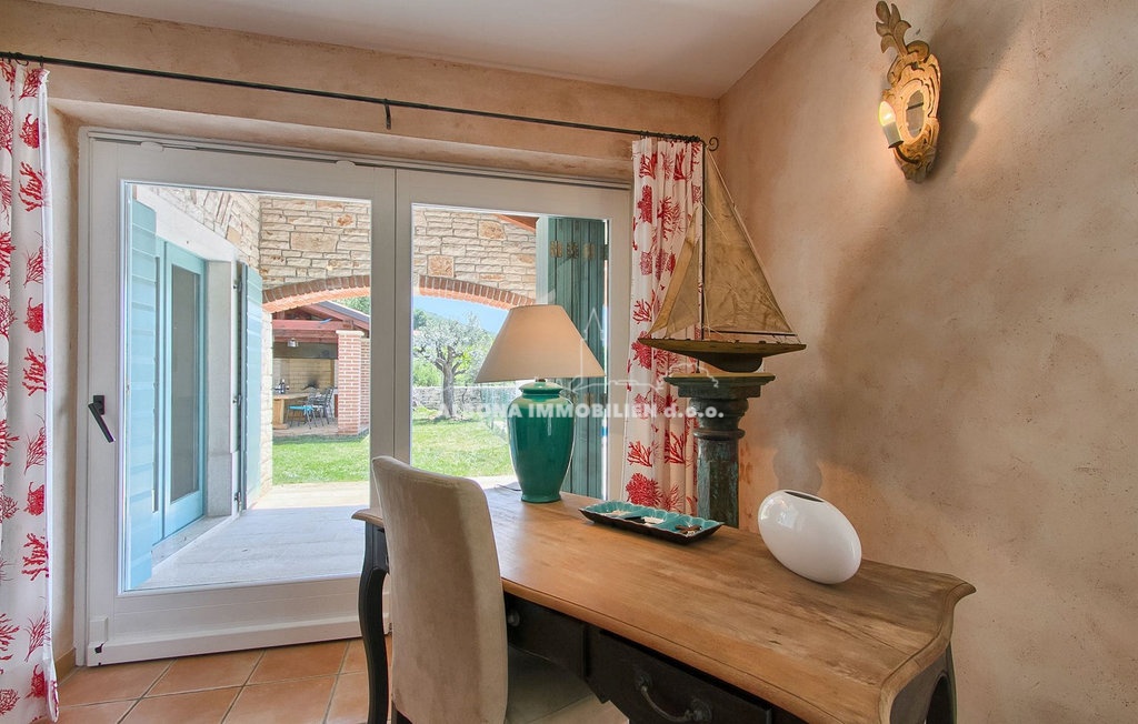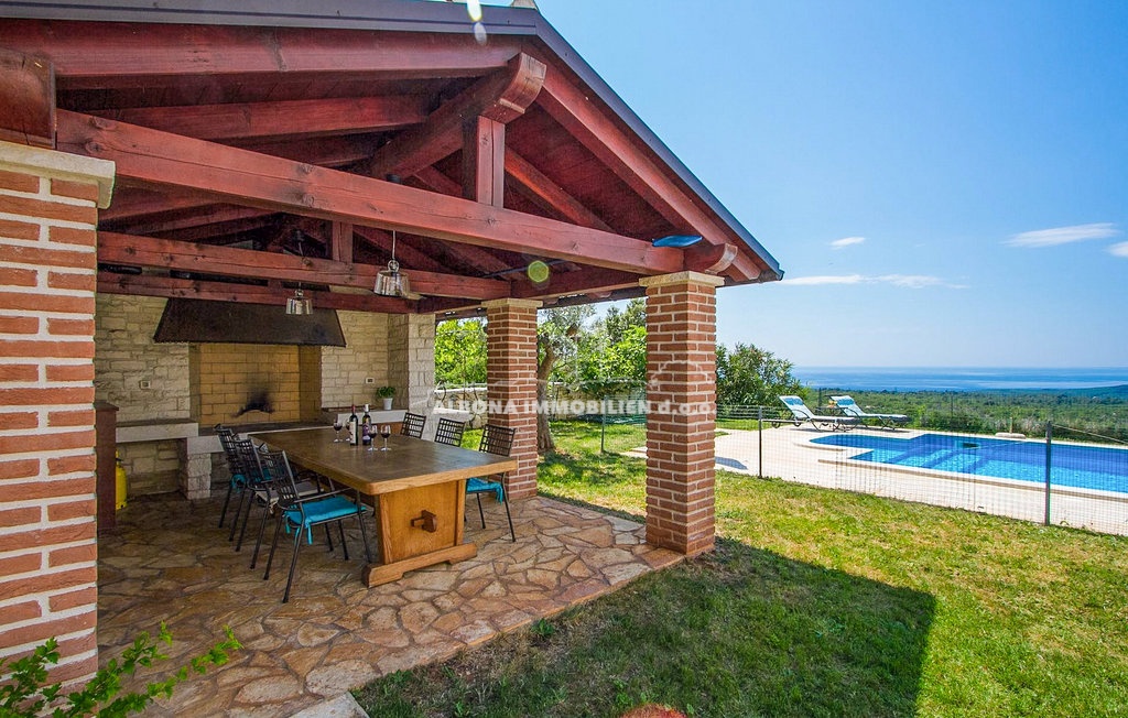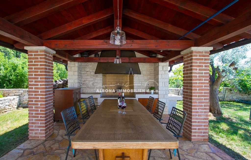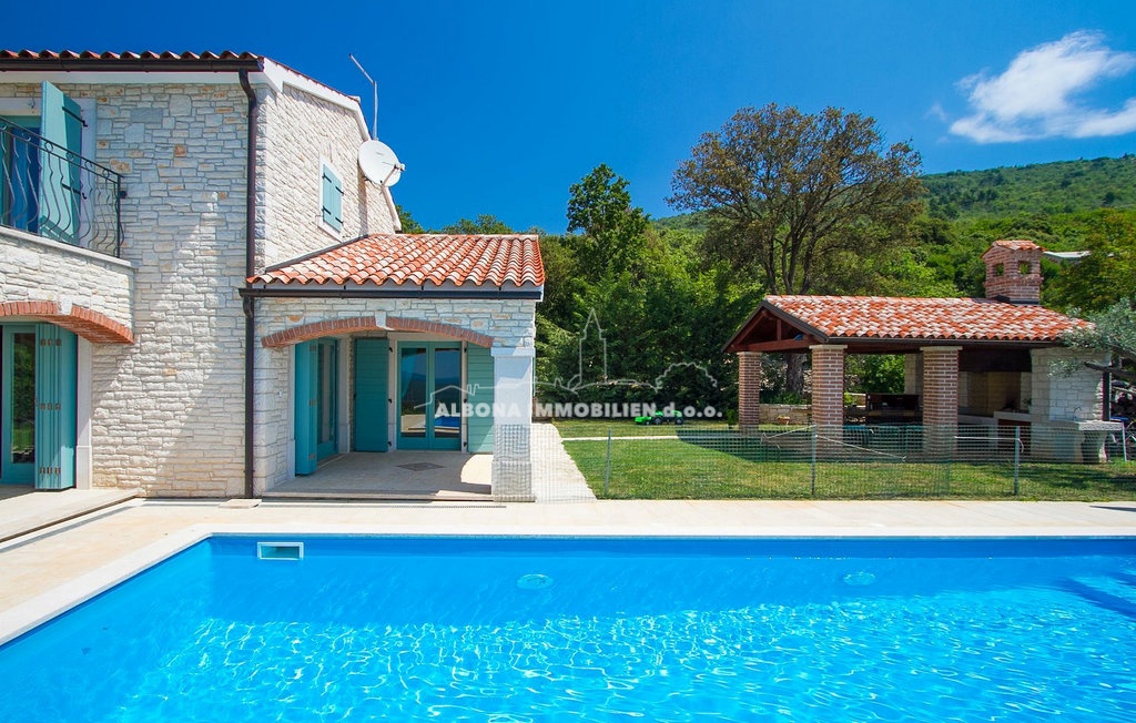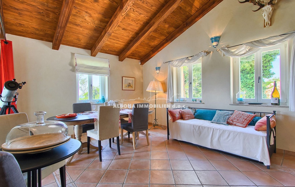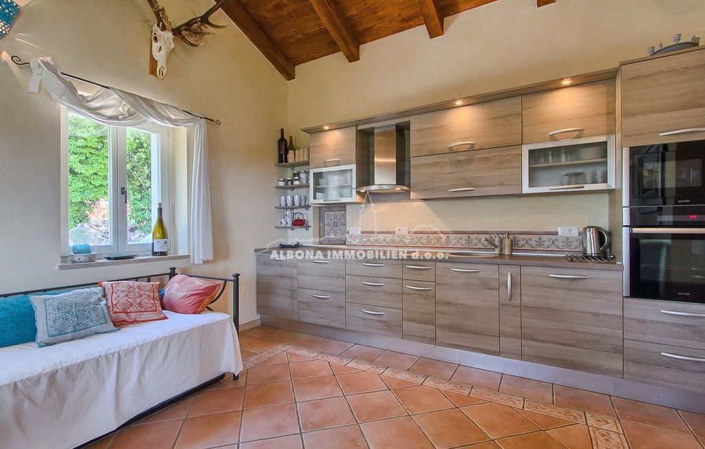 Diese wunderschöne Steinvilla befindet sich in einem kleinen, ruhigen Dorf in der Nähe von Labin. Sie ist nur 2 km bzw. 5 Autominuten vom Meer, Strand und Grünflächen entfernt.