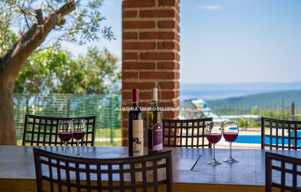 Alle Zimmer im Erdgeschoss haben direkten Zugang zum Garten. Der Hof ist komplett eingezäunt, die Zufahrt zum Grundstück verfügt über ein elektrisches Tor. Das Grundstück, auf dem sich die Villa befindet, befindet sich im hinteren Teil der Bauzone. Dadurch ist Ihnen eine wunderschöne Aussicht, viel Grün und Ruhe garantiert. Das Grundstück der Villa verfügt über einen großzügigen Swimmingpool, eine überdachte Sommerküche und Terrassen mit freiem Blick auf das Meer und die Inseln. Das Haus wurde 2010 mit hochwertigen Materialien erbaut und ist mit handgefertigten Details und Möbeln ausgestattet. Das Haus wird für touristische Zwecke genutzt. Die Immobilie verfügt über alle notwendigen Unterlagen zur Weitervermietung und wird komplett möbliert verkauft.