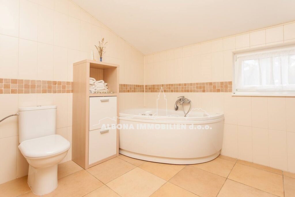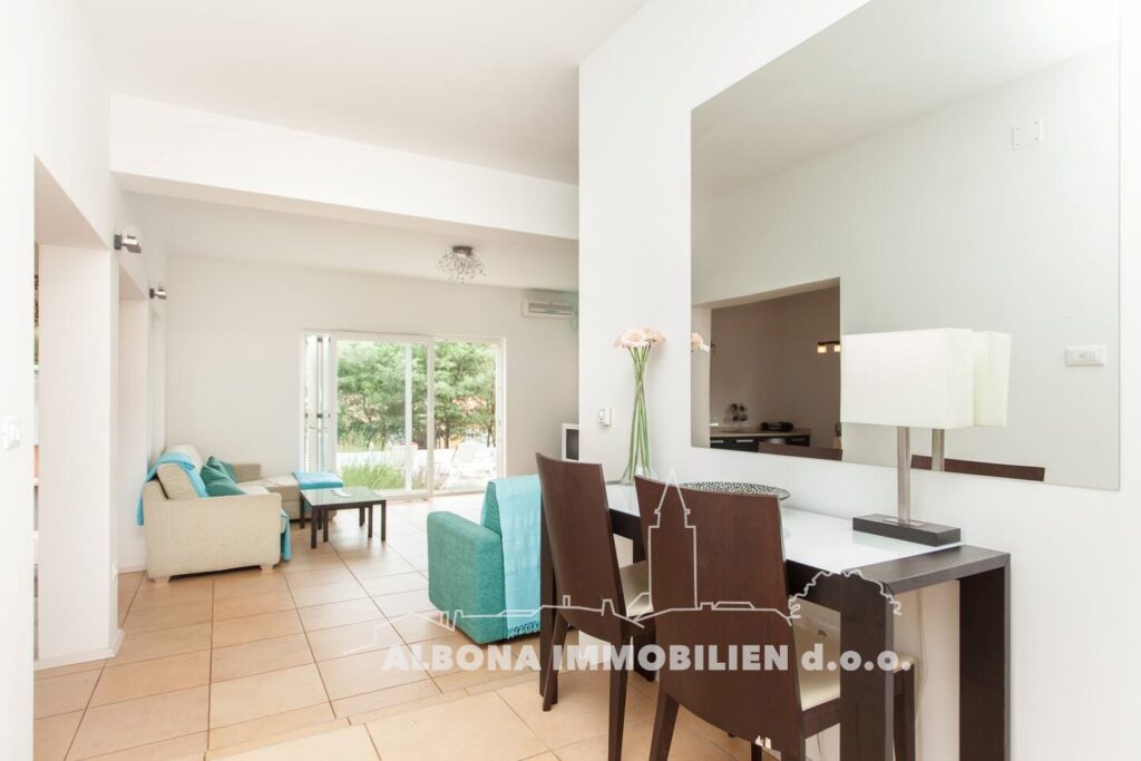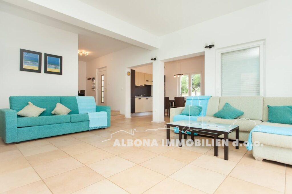 Kuća je kompletno opremljena i uhodana za sezonsko iznajmljivanje, kao i za obiteljski život. Na lijepo uređenoj okućnici smješten je bazen sa sunčalištem, te vrtni roštilj.