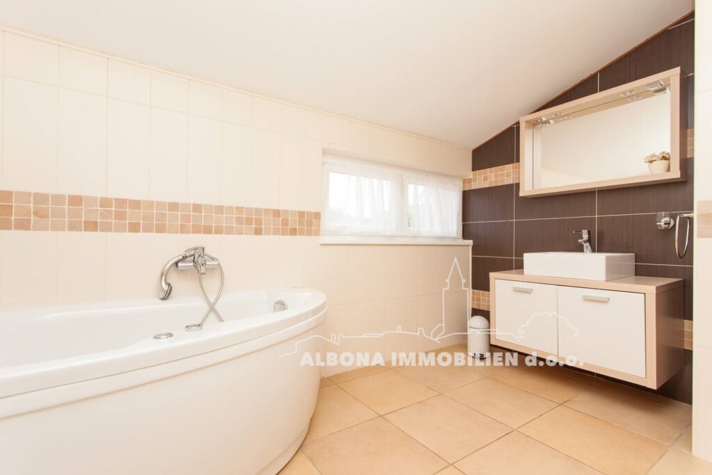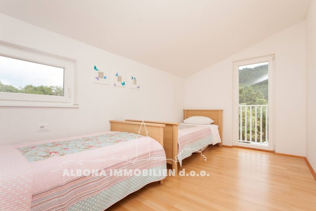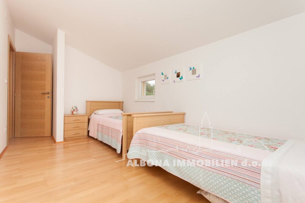 Kuća je na dvije etaže, dnevni dio se nalazi u prizemlju i spavaći dio se nalazi na katu. U dnevnom djelu su smješteni hodnik, kuhinja, blagovaonica, dnevni boravak i kupaonica. Na katu se nalaze tri spavaće sobe i kupaonica s jacuzziem.