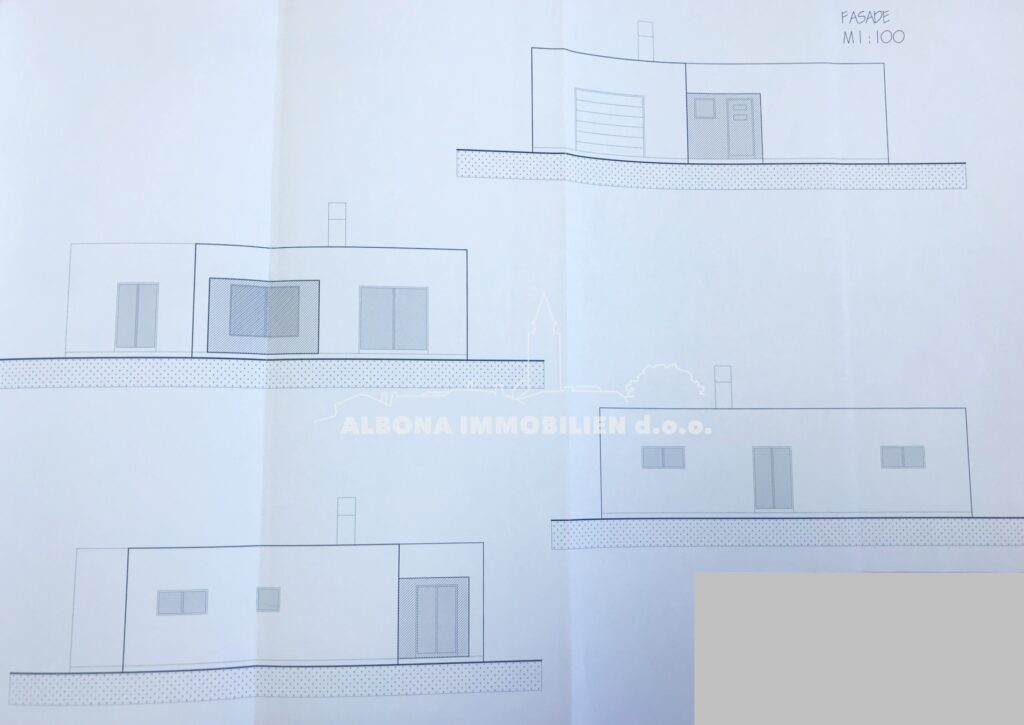 Na zemljištu veličine 647m2 nalazi se moderna kuća stambene površine 109m2. Sastoji se od kuhinje, blagovaone, dnevnog boravka, 3 spavaće sobe, 2 kupaone i natkrivene terase.