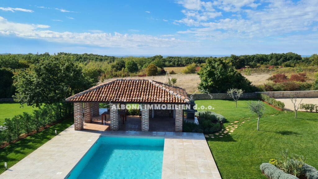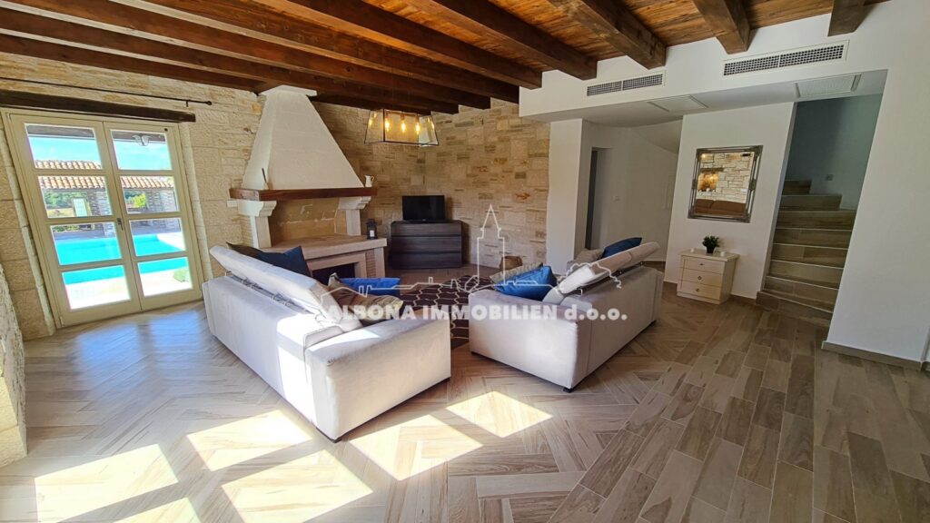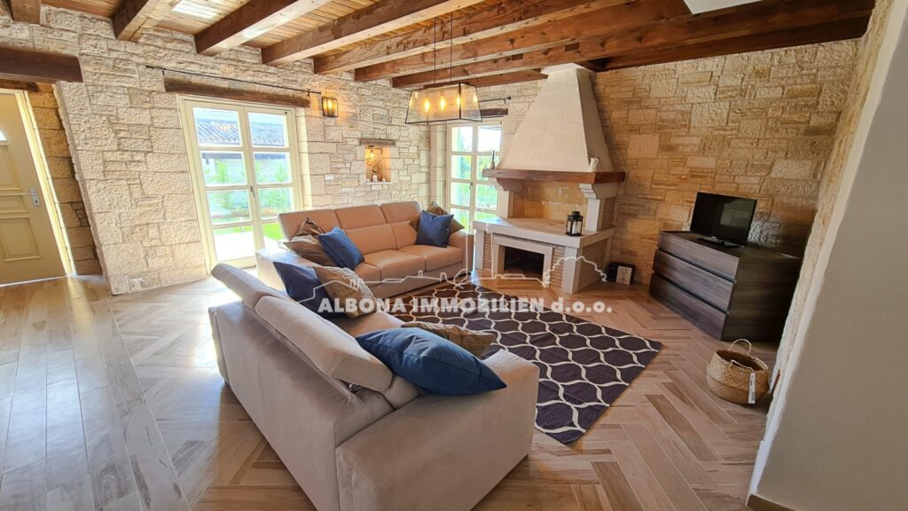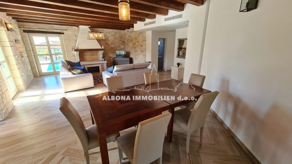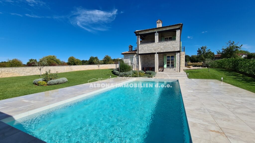 Predivna novoizgrađena kamena vila površine 250 m2 nalazi se na prostranom zemljištu površine 1.527 m2.