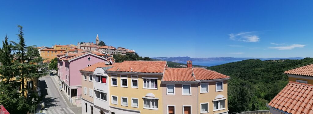 Stan pruža prekrasan panoramski pogled na obližnje turističko mjesto Rabac i stari grad Labin.