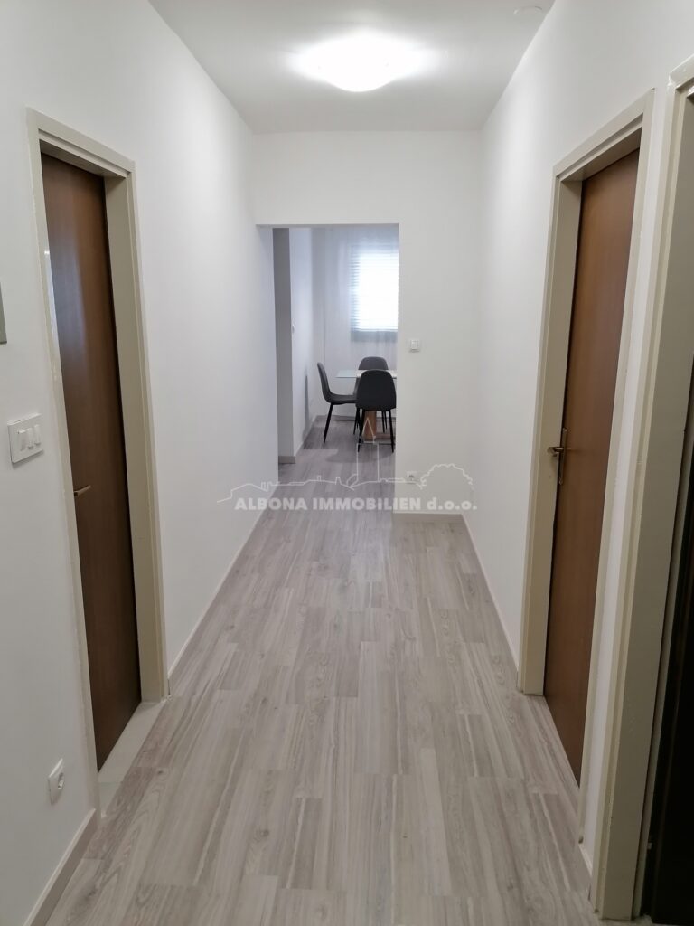 Stan je potpuno renoviran i ne zahtijeva nikakva nova ulaganja. Postavljeno je potpuno novo kupatilo, dvije nove sobe, laminat, novi kauč i televizija.