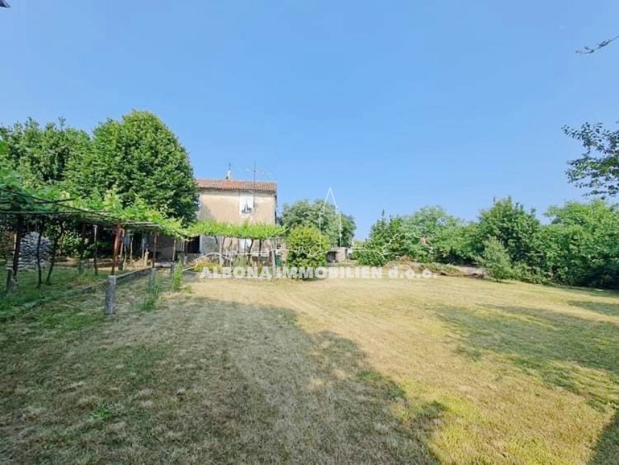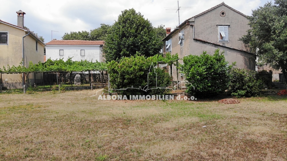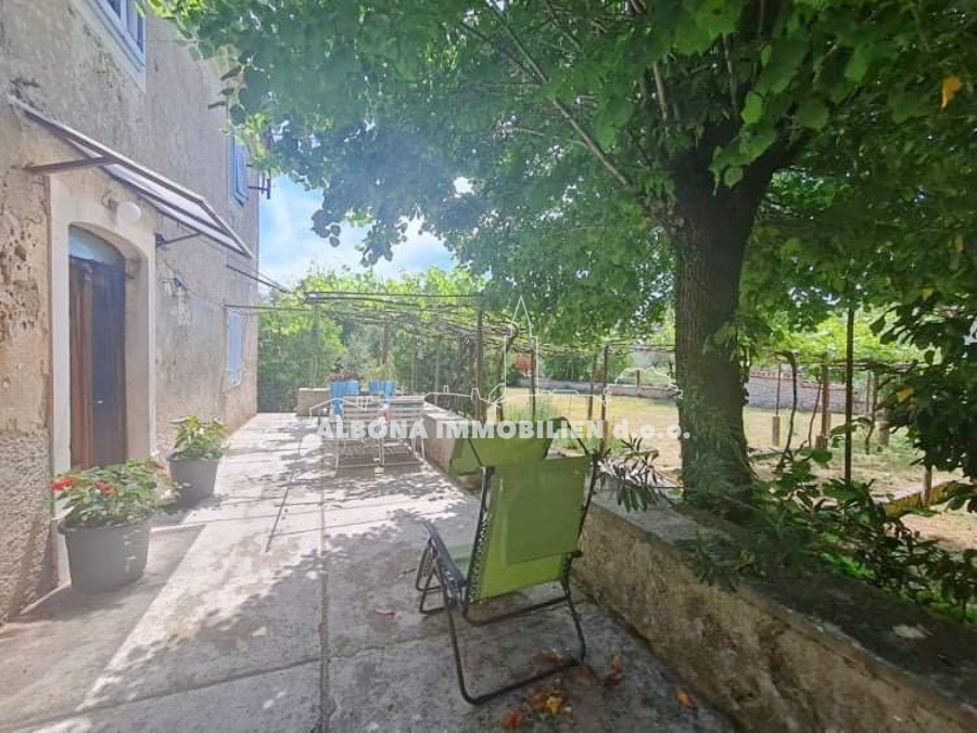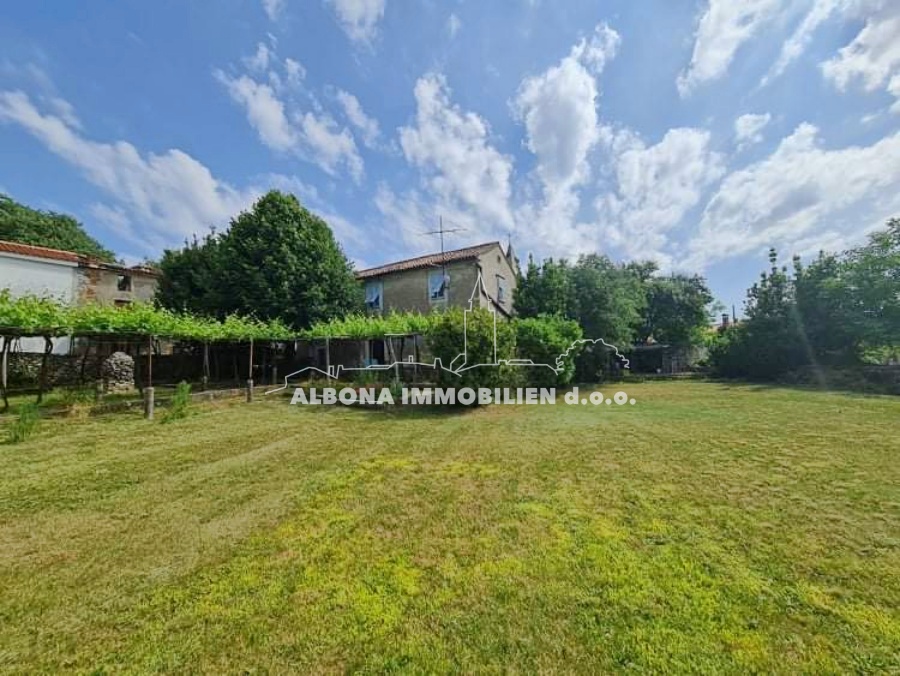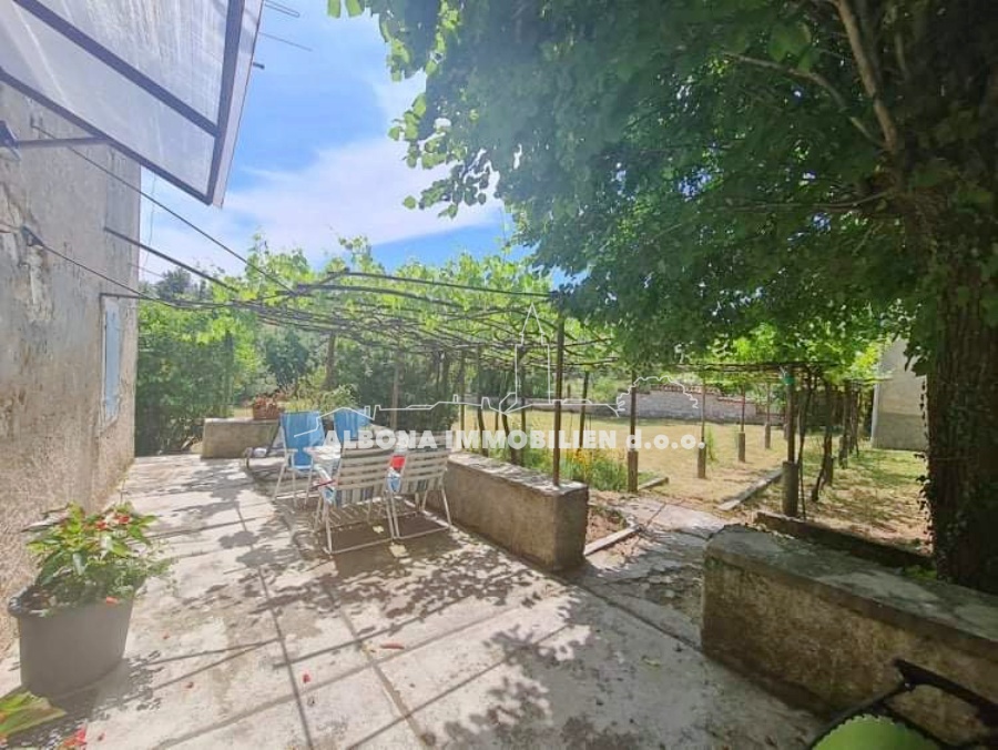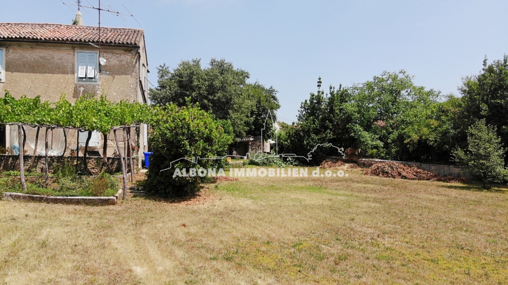 Zemljište u dvorištu kuće je u potpunosti građevinsko površine 1.132m2. U njemu se nalaze ručno izrađena kapelica također iz 1900.-te godine, velika terasa te razno voće i povrće zasađeno na prostranom travnjaku. Okućnica je kompletno ograđena kamenim zidovima. Sa druge strane kuće nalazi se garaža, zasebna kamena kućica s ognjištem i velika cisterna.