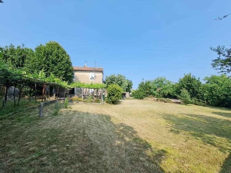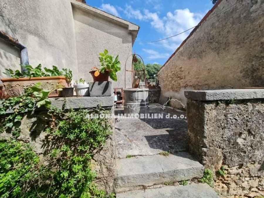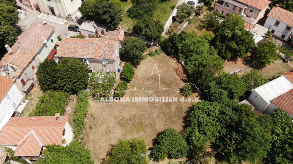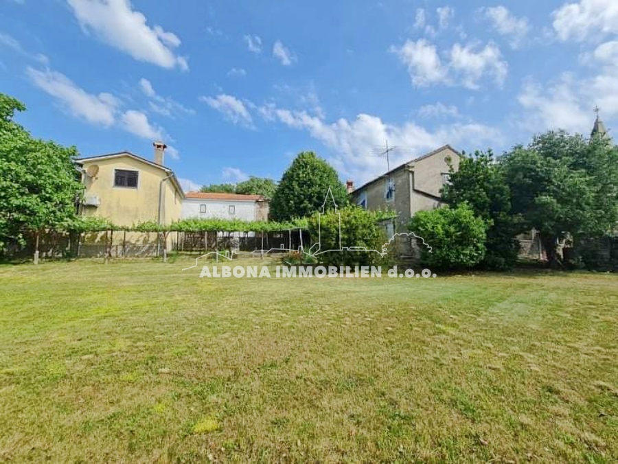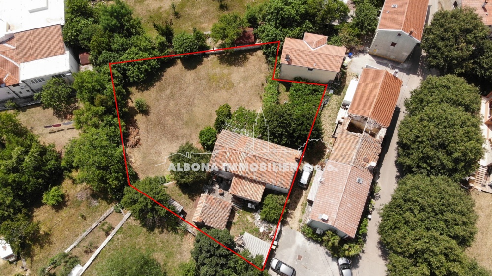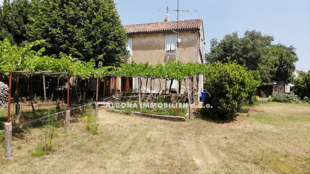 Zemljište u dvorištu kuće je u potpunosti građevinsko površine 1.132m2. U njemu se nalaze ručno izrađena kapelica također iz 1900.-te godine, velika terasa te razno voće i povrće zasađeno na prostranom travnjaku. Okućnica je kompletno ograđena kamenim zidovima. Sa druge strane kuće nalazi se garaža, zasebna kamena kućica s ognjištem i velika cisterna.